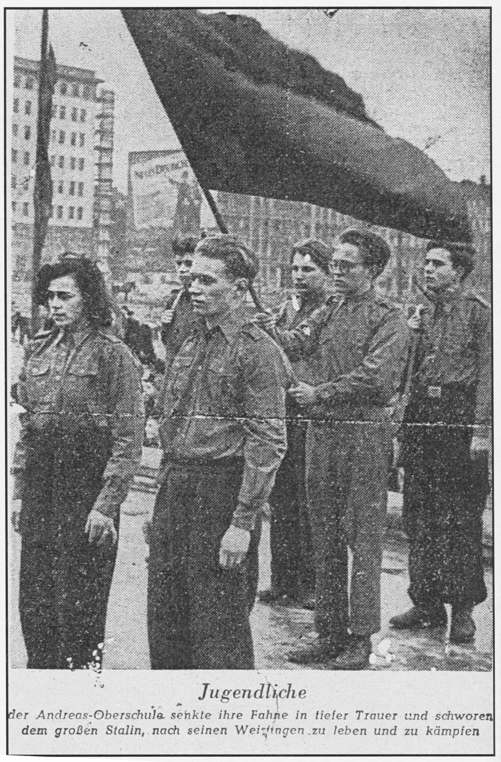 vor dem Stalindenkmal im März 1953
